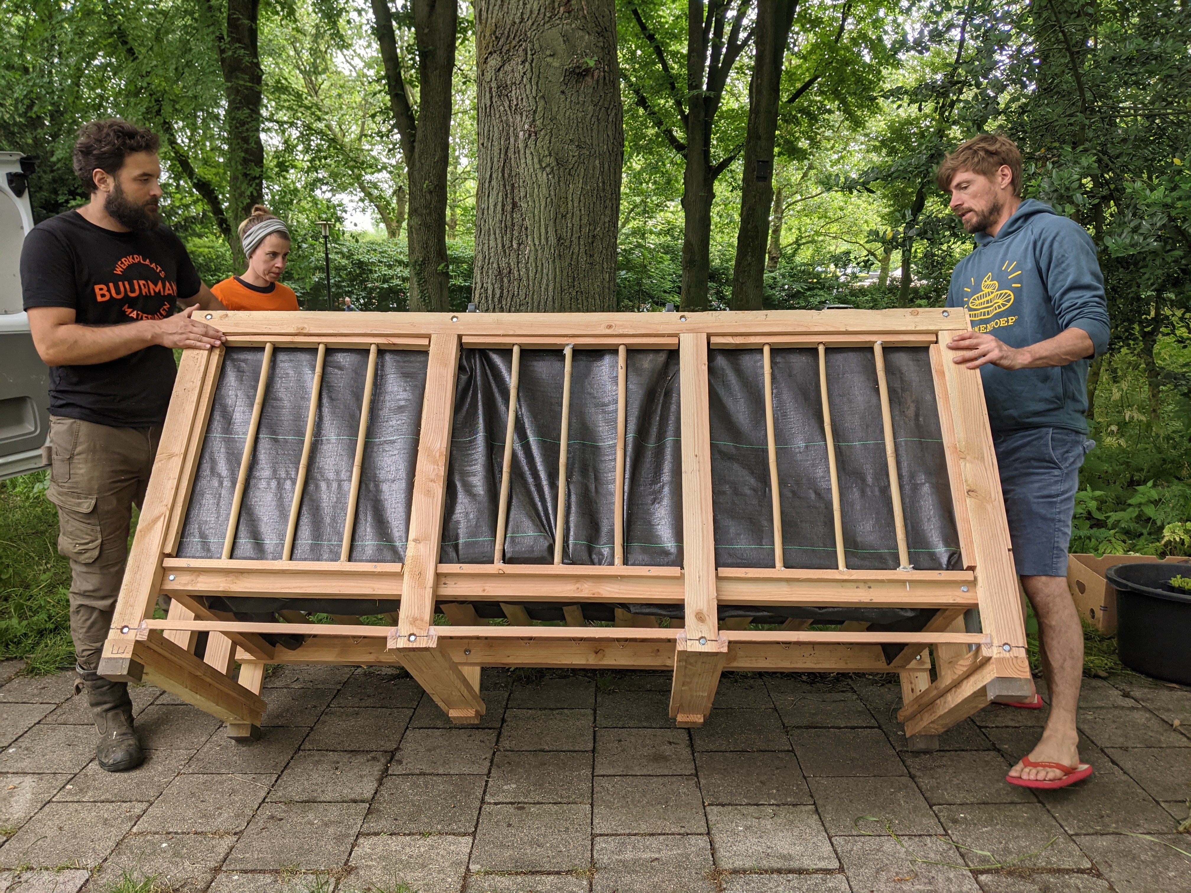 In samenwerking met Compostier maakt Buurman Utrecht wormenhotels voor in de wijk, met als jasje een mozaïek van gered hout. Ieder wormenhotel kan het GFT afval van wel 20 huishoudens verwerken.